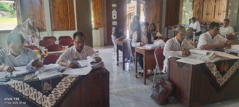 (Nglanggeran-Patuk-desa.id) Rabu, 21 November 2025. Pemerintah Kalurahan Nglanggeran bersama tim Monitoring dan Evaluasi (Monev) dari Kapanewon Patuk melaksanakan kegiatan Monitoring dan Evaluasi (Monev) Pelaksanaan APBKal Nglanggeran untuk memastikan seluruh program dan kegiatan berjalan sesuai perencanaan, regulasi, dan asas transparansi.